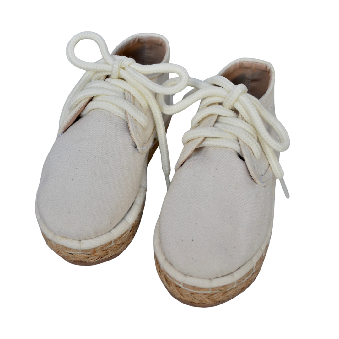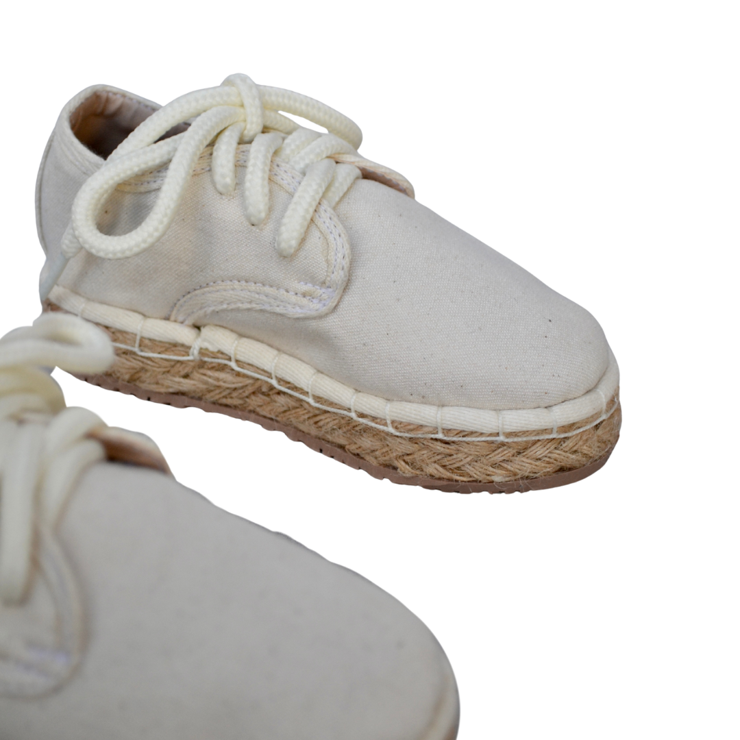 Zapatico cerrado con cordón, color crudo ideal para combinar con cualquier cortejo o perfecto para traje de bautizo