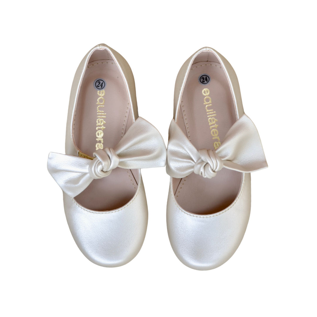 Modelo clásico y atemporal de bailarina con detalle de lazo en nudo, un imperdible en el fondo de armario de las pequeñas. Cuenta con un elástico debajo del lazo que se adapta perfectamente a cualquier tipo de empeine.