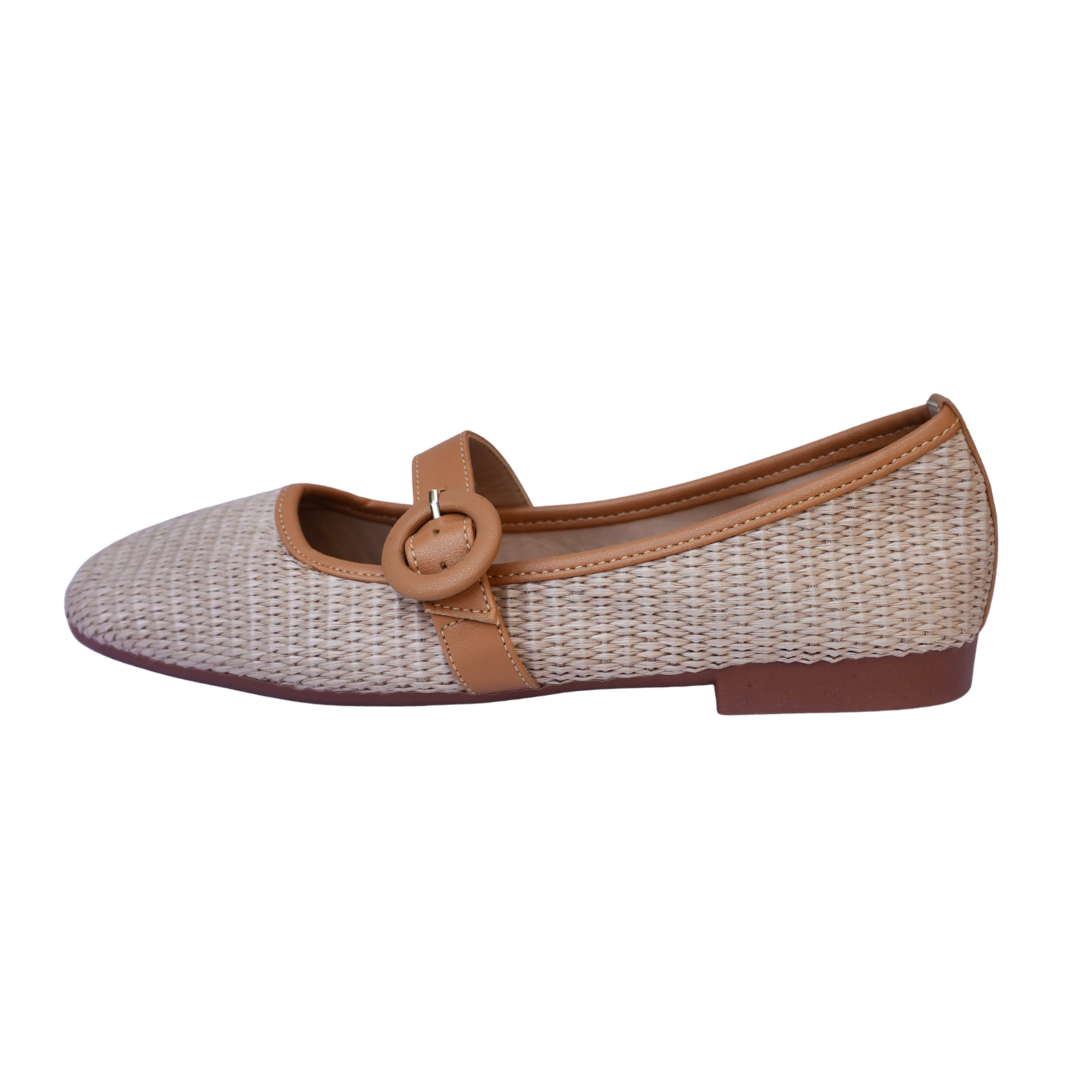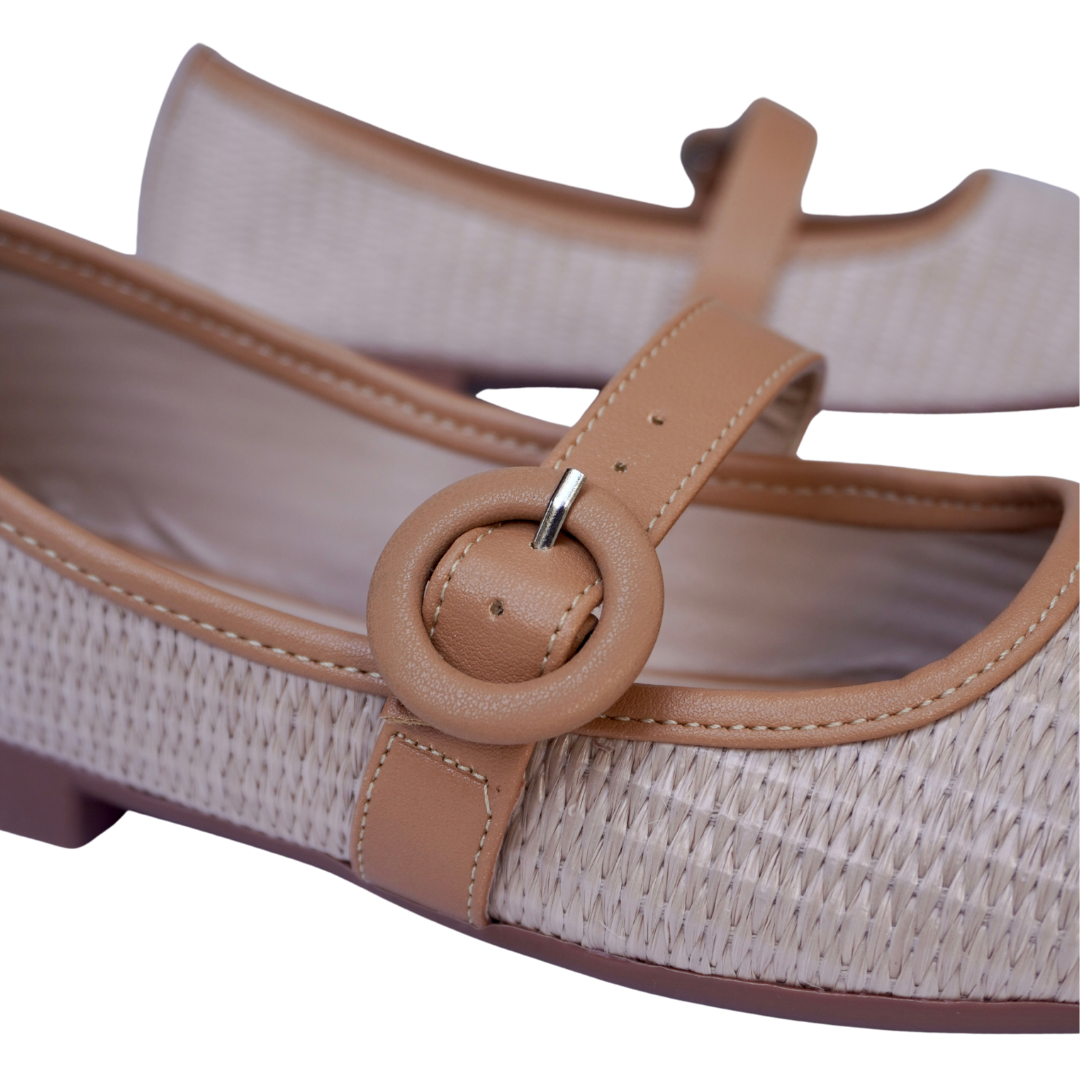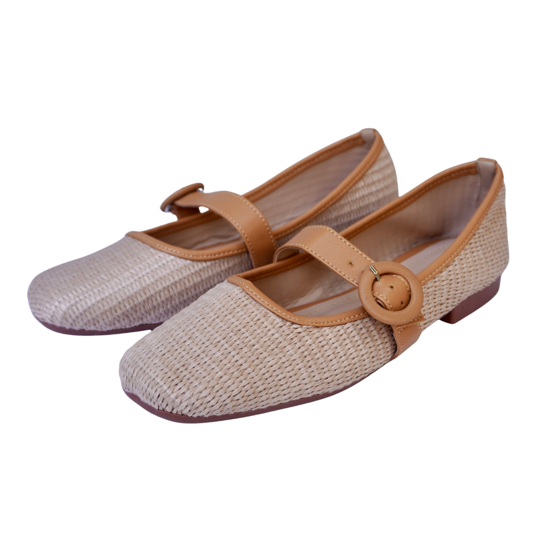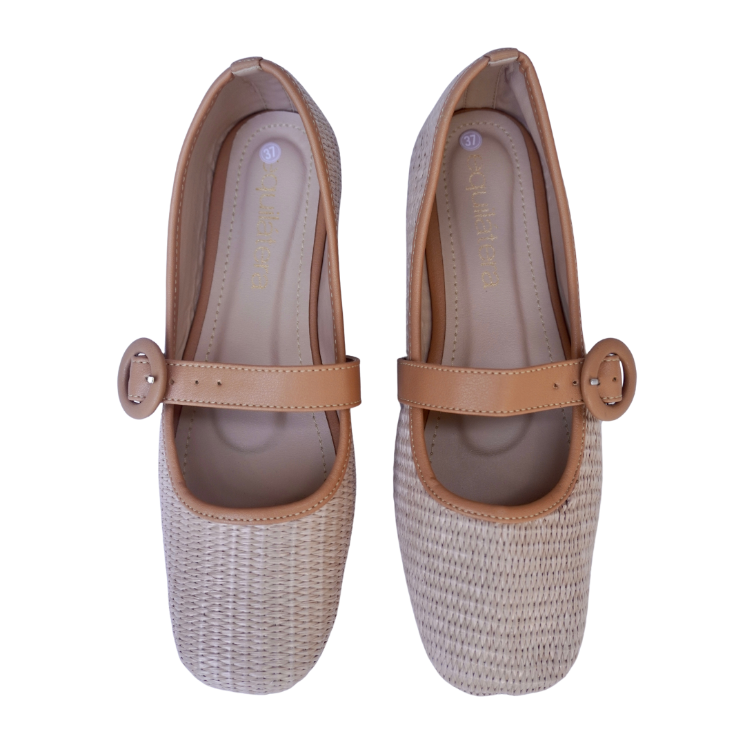 Bailarinas en beige con bies marrón que combinan delicadeza y carácter. Aportan un toque sofisticado, muy "old money" vibes. Ligeras y versátiles, son el complemento perfecto para un look equilibrado y moderno.